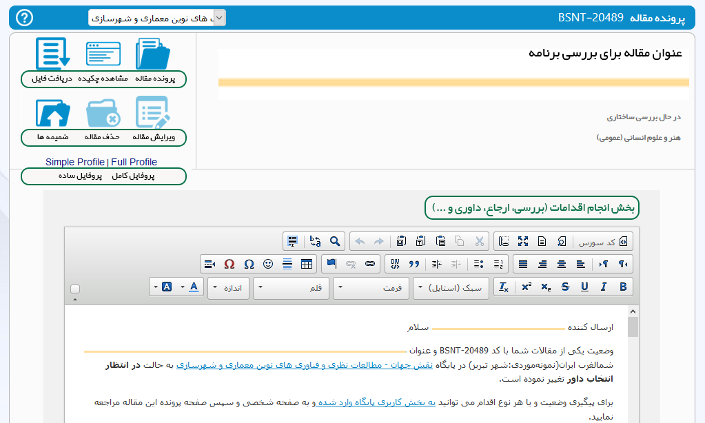 سردبیر یا دبیر علمی ارسال برای داوری در انتظار داوری تخصصی